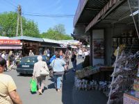 Unser nächstes Ziel lag nicht weit entfernt. Dabei handelte es sich um Bad Muskau, die Stadt an der polnischen Grenze, die wir dreißig Minuten später erreichten. Wir hatten dort etwa zwei Stunden Freizeit geplant. Man konnte sich den auf der UNESCO-Welterbeliste stehenden Pückler-Park ansehen, etwas essen gehen oder über den Polen-Markt schlendern. Den Bus stellten wir auf der polnischen Seite ab. Bei strahlendem Sonnenschein ging nun jeder seiner Wege. Das Ziel der meisten Mitgereisten war der Markt rings um uns. Hier gab es allerlei einzukaufen, von Geschirr bis hin zu Bekleidung, Gardinen, Nahrungsmitteln und Pflanzen.