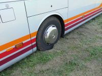 Zunächst hatten wir - oder besser gesagt der Busfahrer - ein anderes Abenteuer zu bestehen. In Schwarzkollm war an der Schwarzen Mühle an diesem Wochenende nämlich Trödelmarkt und eine Wiese in der Nähe war als Parkplatz ausgewiesen. Dort konnten zwar PKW's abgestellt werden, unser Bus versank jedoch im Sand unter dem Gras.