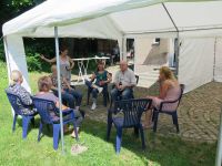Da wir die Museumsnacht wieder einmal so gelegt hatten, dass der Folgetag der Himmelfahrtstag war, blieb Zeit zum Aufräumen und zum Beisammensitzen bei herrlichstem Sonnenschein. Wir mussten die Zelte nicht abbauen, denn diese wurden am Wochenende noch gebraucht.