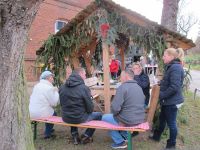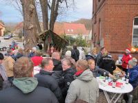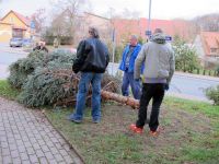 Langsam füllte sich der Platz um das Bürgerhaus und erste Gäste trafen ein. Startzeit für das Aufstellen des Baumes war 15.00 Uhr und pünktlich war auch Karola Stange vor Ort, die wie jedes Jahr beim Baumsetzen anwesend war.