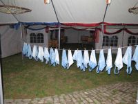 Das 15. Waidfest rückte näher. Es sollte am 7. September "über die Bühne" gehen und wir wollten uns bis dahin genug Zeit für den Aufbau geben. Zumal einige Tage zuvor noch das Sommertheater im Waidfstzelt stattfinden sollte. Die Theke hatten wir bereits aufgestellt. Jetzt ging es um die Zelte und deren Ausschmückung. Der erste Termin für den Aufbau hatten wir auf den 30. August gelegt. Der Tag war ziemlich heiß und wir trafen uns in den Nachmittagsstunden. Unterstützung war zum Termin erschienen, denn der neugegründete Kirmesverein wollte uns beim Zeltaufbau unter die Arme greifen.