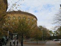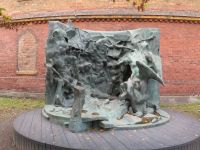 Eigentlich standen zwei Gasometer nebeneinander. Vor dem einen, stand eine Skulptur mit dem Namen "Aktion" vom Leipziger Künstler Otto Berndt Steffen und im anderen war das Panorama installiert. Wie wir schon in Dresden gesehen, hatte man im gewaltigen Rund des Baues ein Panoramabild aufgehangen. Zunächst konnte man sich aber über die Beweggründe des Künstler, Yadegar Asisi, informieren, warum er ausgerechnet dises Motiv gewählt hat.