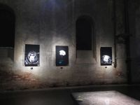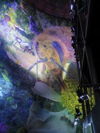 Im Innenraum angekommen fanden wir uns nämlich in "Carolas Garten" als Winzling im Rasen, inmitten von Blumen, Käfern, Grashalmen, Abfall, Kompost, Vögeln und sonstigen Dingen wieder. Dazu gehörte auch ein vergessenes Spielzeugauto oder eine vorüberfließende Quelle. Carola war eine Mitarbeiterin, die vor einigen Jahren verstorben war. Sie hatte sich tatsächlich in ihrem Garten wohlgefühlt und Kraft für die Arbeit getankt. Der Garten, ihr Garten soll auch an die Mitarbeiterin erinnern. Bevor man in den zentralen Raum mit dem Bild kommt geht man als Winzlich auch noch am Bug der Titanic vorüber - ein Überbleibsel einer anderen Schau des Künstlers.