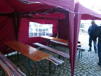 Wir hatten zwei Pavillons am Museum aufgestellt weil der kalte Wind doch etwas heftig um die Ecken blies. Gleich gegenüber war der Glühweinstand aufgebaut, von wo der heiße, würzige Duft zu den ersten Gästen heruber wehte.