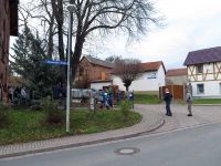 Erst leises und dann lauter werdendes Tuckern verriet das Herannahen des Weinachtsbaumes auf dem Hänger eines Kleintraktors. Richtig - auf der Sömmerdaer Straße aus Richtung Norden näherte er sich und bog von dort kommend auf die Straße Am Bürgerhaus ein.
