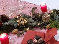 Auch im Bürgerhaus war alles weihnachtlich dekoriert, ob nun Fensternischen oder der Tisch. So konnte man sich festlich eingestimmt auf die Terminabsprache des kommenden Jahres konzentrieren. Selbstverständlich gab es dabei auch einen kleinen Rückblick auf das was in letzter Zeit im Verein passiert war, wie die erst vor einigen Tagen stattgefundene Weihnachtsfahrt oder das Aufstellen des Weihnachtsbaumes.