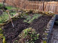 Bei Sonnenschein und milden Temperaturen ging es also ans Werk. Zuerst mussten die Vorjahrespflanzen weichen. Wir hatten immer eine kleine Ecke "Altpflanzen" stehen lassen, um Samen zu erhalten. Diesmal wurde das komplette Beet geleert, weil wir im letzten Jahr Waid in Kübeln ausgesät hatten. Diese würden zur Samengewinnung vollkommen ausreichend sein.