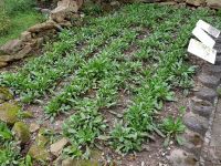 Während das Wasser also langsam anfing zu dampfen und das Thermometer immer höhere Temperaturen anzeigte wurden mit dem Waideisen die Blattschöpfe der Waidpflanzen gestochen, also kurz über der Wurzel abgetrennt.