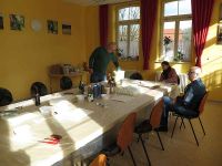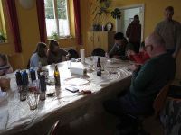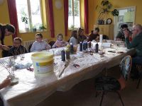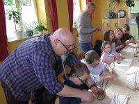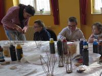 Mit Begeisterung wurde zu Farbe und Pinsel gegriffen und weißen Eier zu bunten Exemplaren gemacht. Bei der Arbeit verging die Zeit wie im Fluge und jeder konnte sein Körbchen, gefüllt mit bunten Eiern - selbst hergestellt - mit nach Hause nehmen.