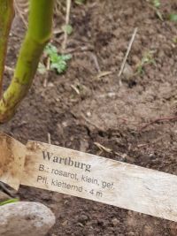 Aus der Beschreibung ergibt sich, dass der Standort Am Lindenborn wohl (bei 6 Metern Trieblänge) mit einer erheblichen Kletterhilfe versehen werden oder die Rose mit einer der Linden vorliebnehmen muss. Übrigens gibt es noch eine weitere Rose mit dem Namen "Wartburg", die jedoch erst 1977 gezüchtet wurde, gelb blüht und dem Fahrzeug mit gleichem Namen gewidmet wurde.