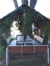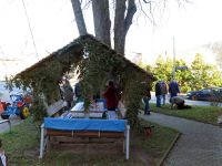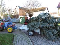 Auch der Glühweintopf sowie die Tische und Gerätschaften fanden ihren Platz. Das Motorengeräusch des Mini-Traktraktors kündigte an, dass es an der Zeit war, den Weihnachtsbaum zum Bürgerhaus zu transportieren.