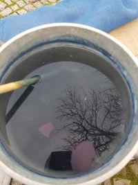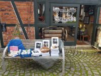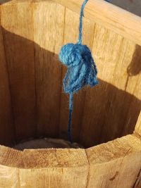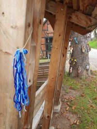 Von dort also wurden die blauen Fäden geknüpft. Am Museum sollte allerlei geboten werden. Angefangen von Geschichten im Museum bis hin zum Färben mit Waid. Sogar Glühwein war für die durchgefrorenen Besucher bereitgestellt. Es wurden auch wieder Insektenhotel-Bausätze zum Verkauf angeboten.