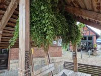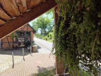 Wie immer wurde auch in diesem Jahr die Minze (und Melisse) zum Trocknen unter das Dach der "Minzebank" gehangen, die daher ihren Namen trägt.