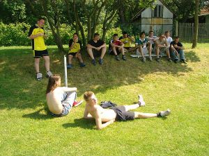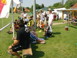 Die Auswertung der Saison, natürlich mit Blick auf den Aufstieg in die 1. Stadtklasse, erfolgte dann im Schatten mit kühlen Getränken ...
