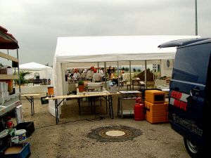 Mitten auf einer der Straßen im GVZ wurden Zelte aufgestellt, in denen Tische und Bänke bereit standen. Es sollte getafelt werden und roch beim Näherkommen bereits lecker.