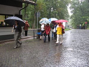 Am Morgen wurde deutlich, dass der Tag etwas feucht werden würde, denn es regnete in Strömen. Die Gruppe, die sich unter dem großen Ahorn in Hochstedt getroffen hatte, entschloss sich nach kurzer Diskussion dazu, nicht zu Fuß nach Vieselbach zu laufen, um "nicht gleich wie die Schweine" dort auf dem Bahnhof anzukommen.