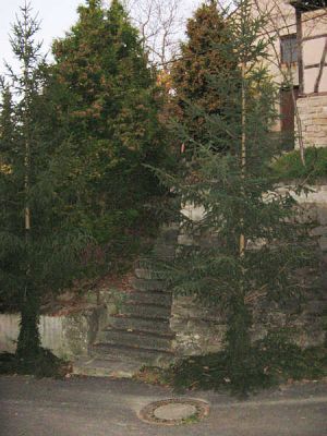 ... deshalb galt es zunächst, alles das herzurichten, was zu einer Kirmes notwendig ist. Dazu gehört auch das Aufstellen der Fichten vor der Kirche, deren Weihe, quasi Geburtstag, ja mit der Kirmes gefeiert wird. Das Aufstellen erfolgte schon am 27. Oktober ...