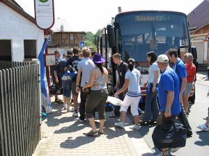 Bei sommerlicher Hitze ging es zwei Stunden vor Anpfiff, um 12:30 Uhr mit dem Bus in Richtung Hochheim.