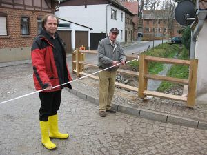 Nachdem im letzten Jahr die Brücke am Waidgarten erneuert worden war, ging man nun daran, die zweite Brücke Hochstedts zu erneuern. Kurz vor Beginn der Bauarbeiten entstanden ...