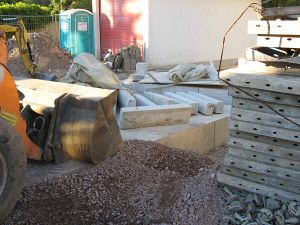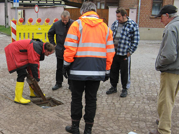 Immerhin begannen in der Woche der eigentlichen Fertigstellung, die Pflasterarbeiten ...