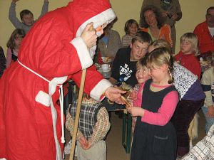 Nachdem ihm das von den Kindern bestätigt worden war, verteilte er die Gaben. Jedes Kind erhielt ein kleines Buch und einen Schokoladenweihnachtsmann.