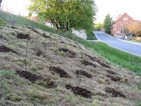 kleinen Berges am Ortsausgang in Richtung Mönchenholzhausen mit Sträuchern zu bepflanzen. Oben auf dem Plateau wurden zwischen die vorhandenen, fast abgestorbenen alten Kirschbäume fünf junge Pflaumenbäume gepflanzt. Am 21. April waren die Arbeiten abgeschlossen und nicht nur die Sträucher begannen zu wachsen, sondern auch das Gras rings herum...