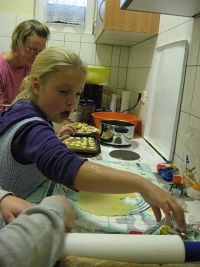 Zur Addventzeit gehört das Plätzchenbacken einfach dazu. Da der Freizeittreff jetzt wieder regelmäßig geöffnet hat, war nach der kleinen Gesangsaufführung in der untern Etage bei der Seniorenweihnachtsfeier, im Stockwerk darüber Sterne -Ausstechen angesagt. Teig wurde gerollt und mit verschiedenen Formen Plätzchen hergestellt, die anschließend gebacken und auch gekostet wurden. Diejenigen, die keine Lust zum Backen hatten, bastelten und malten im Nebenraum und naschten zwischendurch an dem Backwerk der Bäcker.