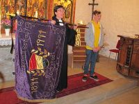 Nach dem Gebet und einigen Liedern übergab die Pastorin die Hochstedter Kirmesfahne an die Gesellschaft und wünschte allen eine schöne Kirmes.