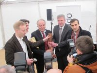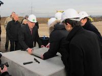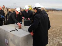 Dort angekommen versammelten sich die Politiker und die Geschäftsführer, um die Hülse gemeinsam in einen Betonblock einzumauern. Der Wirtschaftminister versenkte die Hülse in einem Loch und gleich darauf begannen Rubin Ritter und Andreas Bausewein Zement mit der Kelle am Rand des Loches zu verteilen, worauf dann eine Platte gelegt wurde.