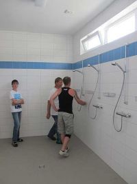Das Wochenende ging leider bei recht feuchtem Wetter weiter und am Sonnabend weihten die A-Junioren und die 2. Mannschaft das Gebäude ein, während die F-Junioren erst am Sonntag-Vormittag die neuen Räume nutzten.