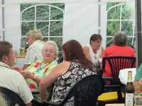 Am 4. August 2012 fand das 11. Straßenfest in der Schmette statt, die auch Latschengasse genannt wurde. Im letzten Jahr war ja fast der Winter ausgebrochen, was sich in diesem Jahr ins Gegenteil verkehrt hatte. Die Sonne hatte den ganzen Tag vom blauen Himmel gestrahlt und die Temperaturen waren mehr als sommerlich. Auch nach 18.00 Uhr ging es eher heiß zu, besonders im Feier-Zelt. Trotzdem waren schon zahlreiche feierwütige Anwohner aus der Straße und solche aus anderen Straßen Hochstedts beim gemütlichen Fest.