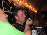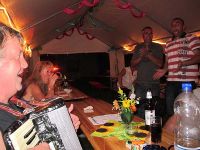 Mit viel Geklatsche und lauten Gesängen ging es hinein in die Nacht. Der Musiker mit dem Zerrwanst kam dabei nicht mal dazu sein Zigarettchen zu rauchen und brauchte Unterstützung. Das Fest dauerte noch lange, wobei auch für die ältere Generation eine Durchhalte-Parole ausgegeben worden war und diese bis spät - oder früh - mitfeierte.