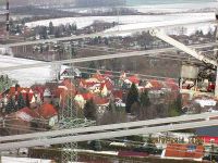 Ganz besondere Ansichten Hochstedts boten sich ab gegen Ende Januar 2014 denjenigen, die Arbeit an den Masten der 380 kV-Leitung hatten. Die Monteure, die an den Hochspannungskabeln mittels Arbeitsgondeln hin und her fuhren, konnten Hochstedt aus für uns vollkommen unbekannter Perspektive sehen. Einer von ihnen fand sich bereit einige Bilder zu machen, um auch andere an diesem Anblick teilhaben zu lassen. Herzlichen Dank dafür!