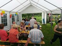 Am Nachmittag gab es jedoch erst einmal jede Menge selbst gebackenen Kuchen und Kaffee. Das Zelt füllte sich langsam, denn auch an diesem Nachmittag lief eine Fußballübertragung von der Europameisterschaft. Dieser oder jener Besucher wollte sich erst das Spiel ansehen und dann erst zum Sommerfest aufbrechen. Man feierte schließlich bis in die Nacht hinein und am anderen Morgen ging es beim Abbaufrühschoppen weiter...