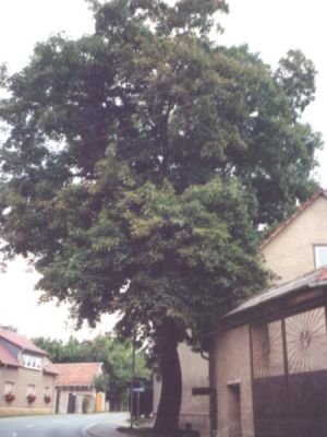 Von den ehemals zwei nebeneinander stehenden Bäumen kann man heute nur noch einen sehen. Beide Bäume wurden um das Jahr 1880 angepflanzt und spendeten den an ihnen angebundenen Pferden vor dem ehemaligen Gasthaus Mende an der heutigen Kreuzung "Sömmerdaer Straße", "Alte Schmiede" und "Zum Landhaus" ihren Schatten.