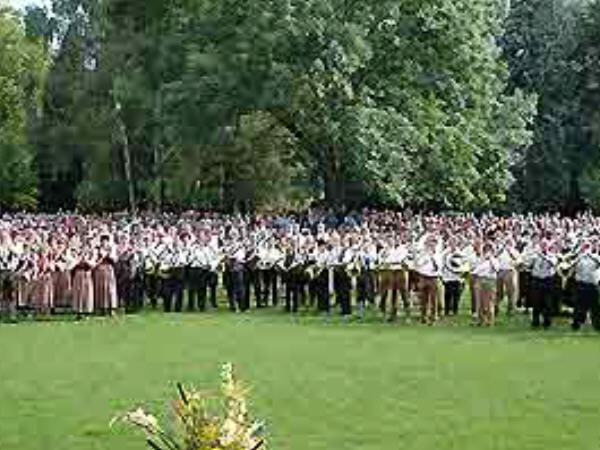 Insgesamt 62 Bläsergruppen mit 1.016 Teilnehmern präsentierten am 3. Juni 2007 Jagdmusik auf hohem Niveau und mit internationalem Flair auf dem hessischen Jagdschloss Kranichstein.