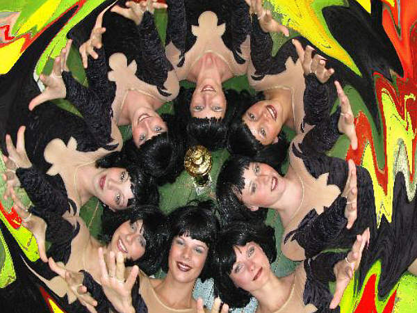 Die „Powerbiens“ vom ESV Lok Erfurt mit Nadine Grenzdörfer (links unten) starteten in der Klasse der Erwachsenen. Mit ihrem Tanz-Medley zu „It`s raining man“ wurden sie ebenfalls Thüringenmeister.