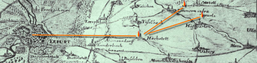 In Hochstedt empfangene Signale aus Richtung des Ettersberges konnten, wegen der etwas erhöhten Lage des Ortes, schnell nach Erfurt weiter gegeben werden und alarmierten die Stadt. Es ist anzunehmen, dass entweder auf dem großen Hochstedter Weinberg oder oberhalb des Weingartens über dem Gut, eine Stelle existierte an welcher die Signalfeuer entzündet wurden. Dazu benutzten die Wächter, zu diesem Zweck bereit gelegte Reisigbündel.