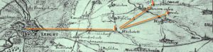Karten: bearbeiteter Ausschnitt der Karte des Erfurter Landgebietes (Gezeichnet von Bern), nach 1706